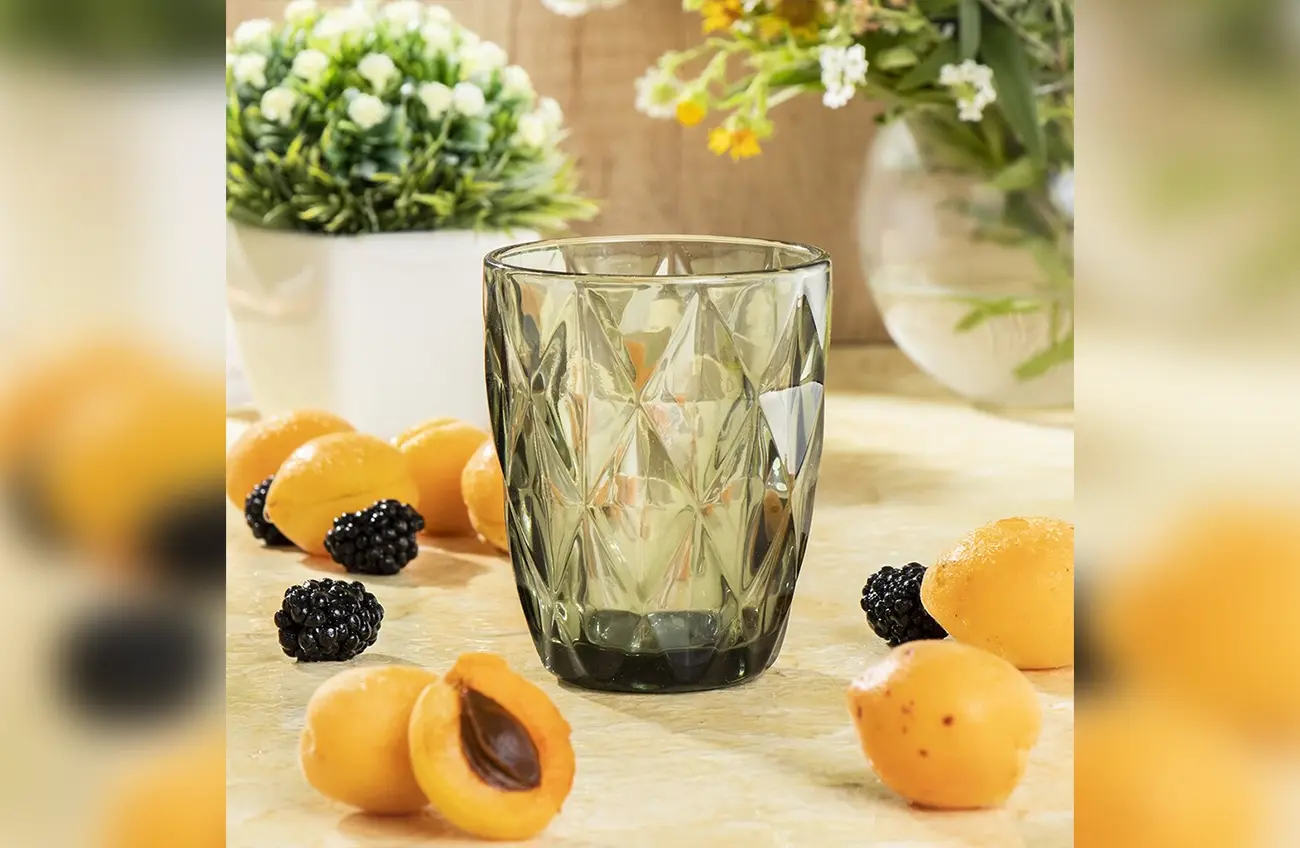 Стаканы цвета малахита будут смотреться довольно изысканно и привлекать внимание за столом. В зависимости от освещения, цвет стакана может меняться, приобретая графитовый оттенок, что добавляет атмосферу загадочности.
