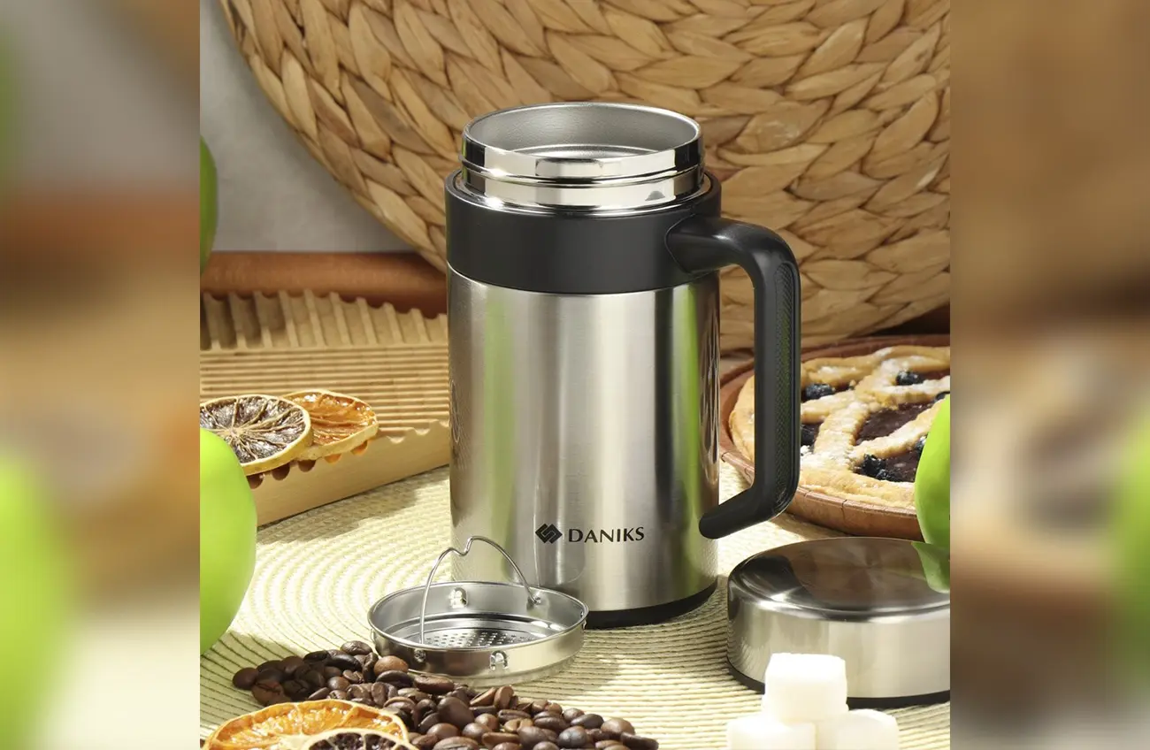 Термокружка Daniks - это не только функциональный аксессуар, но и стильный элемент вашего повседневного образа, который будет радовать вас своей надежностью и удобством использования.
