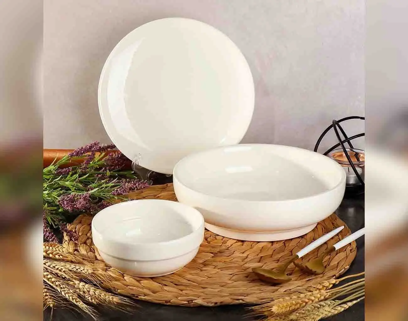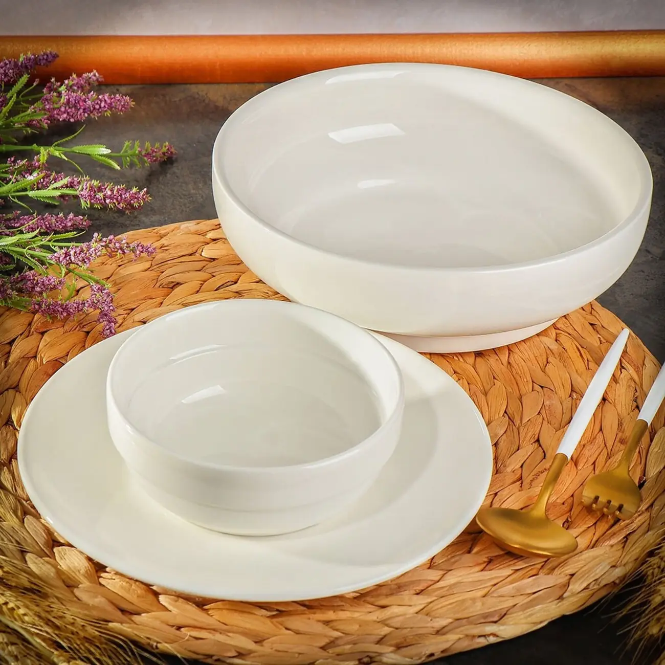 Классический белый цвет салатника создает элегантный и чистый вид, который легко сочетается с любой кухонной утварью и интерьером. Керамический материал обеспечивает прочность и долговечность, а также безопасен для использования в микроволновой печи и духовке.