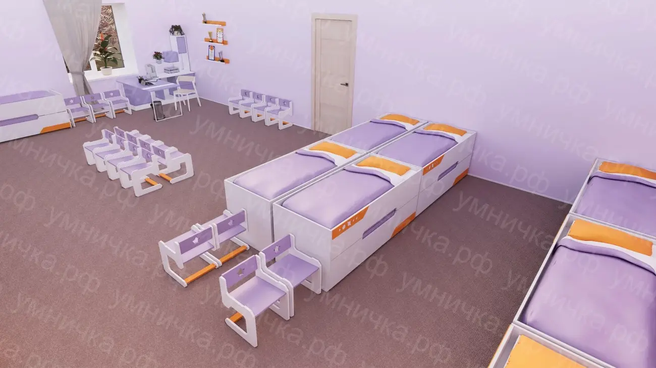 Двухъярусная кровать из новой коллекции станет отличным решением для обустройства спальных зон в учреждении. Выдвижные спальные места не загромождают пространство, а оригинальный дизайн будет украшением интерьера группы.