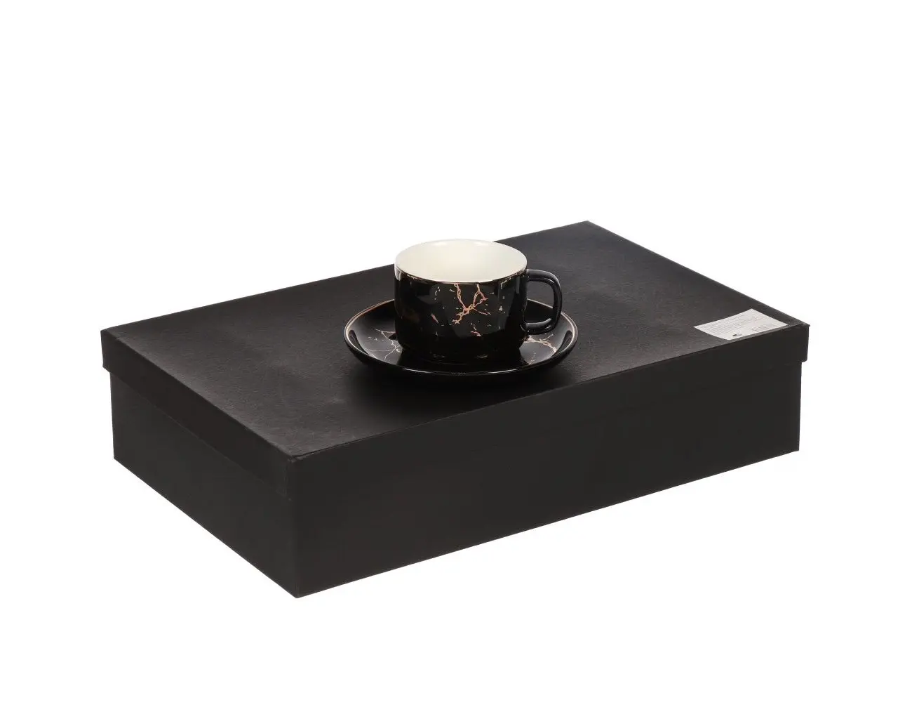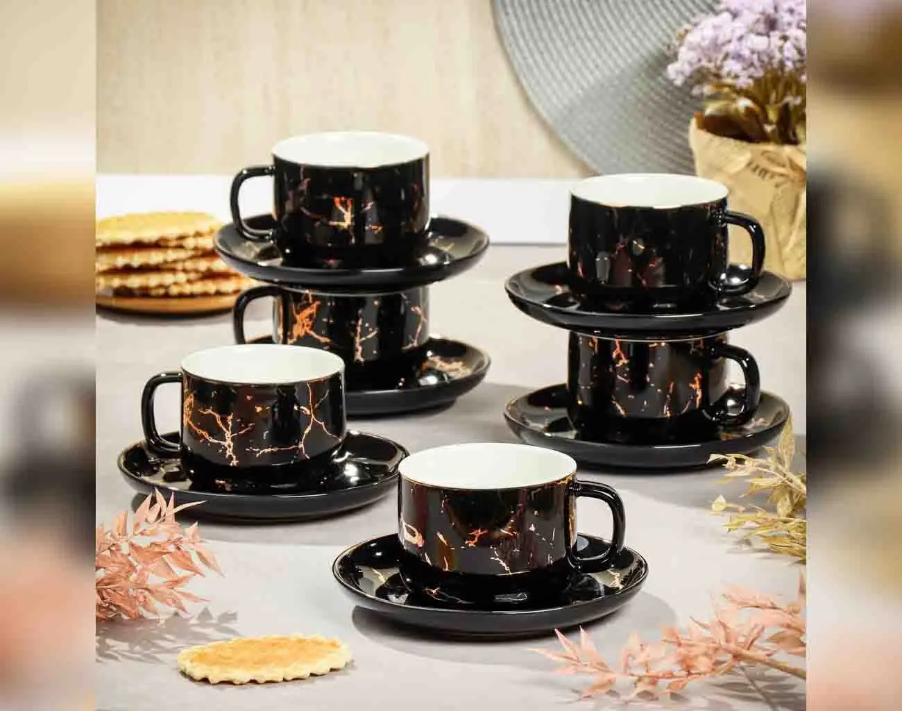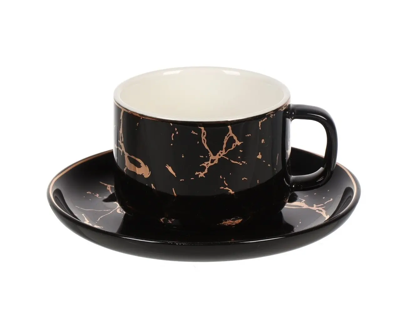 Чайный набор из керамики с рисунком черного мрамора с золотыми