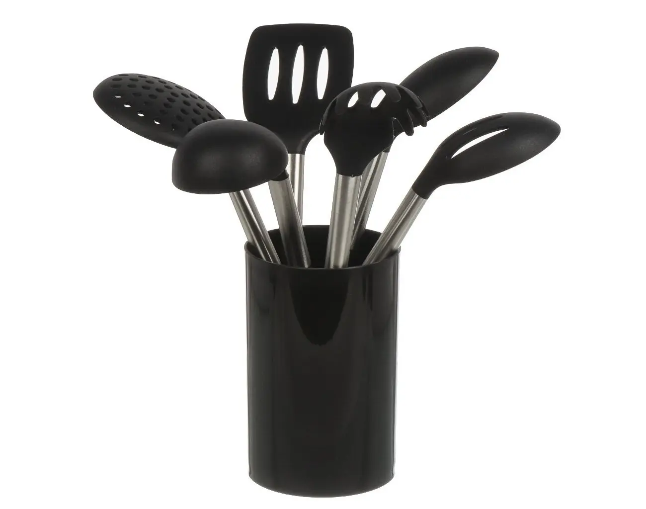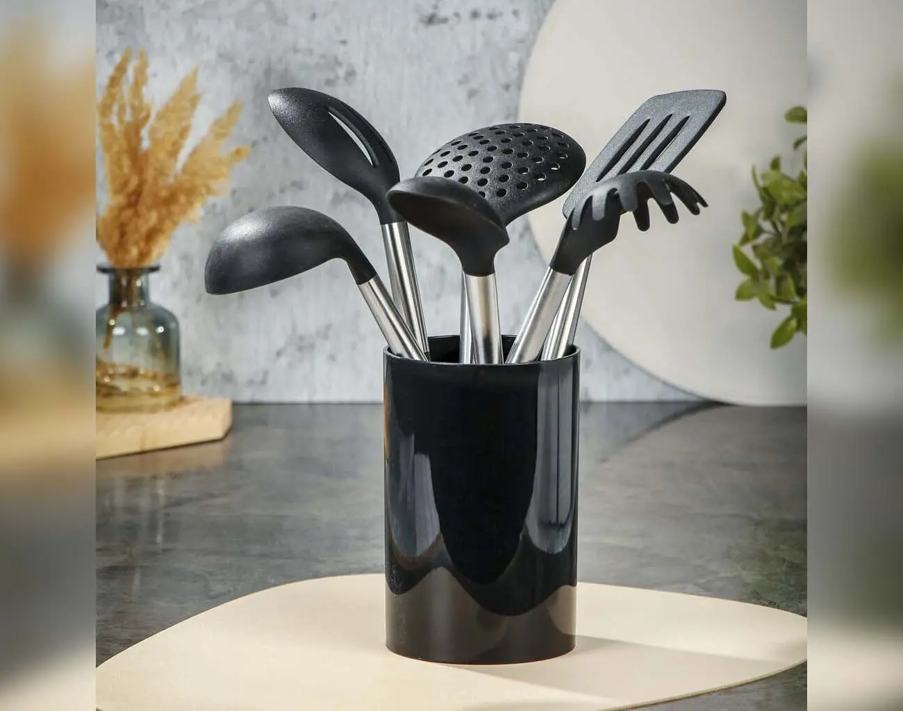 Набор кухонных принадлежностей - это идеальный выбор для тех, кто хочет иметь все необходимое для приготовления пищи в одном месте. Этот набор включает в себя все необходимые инструменты для приготовления и подачи пищи, а также имеет удобную подставку для хранения.