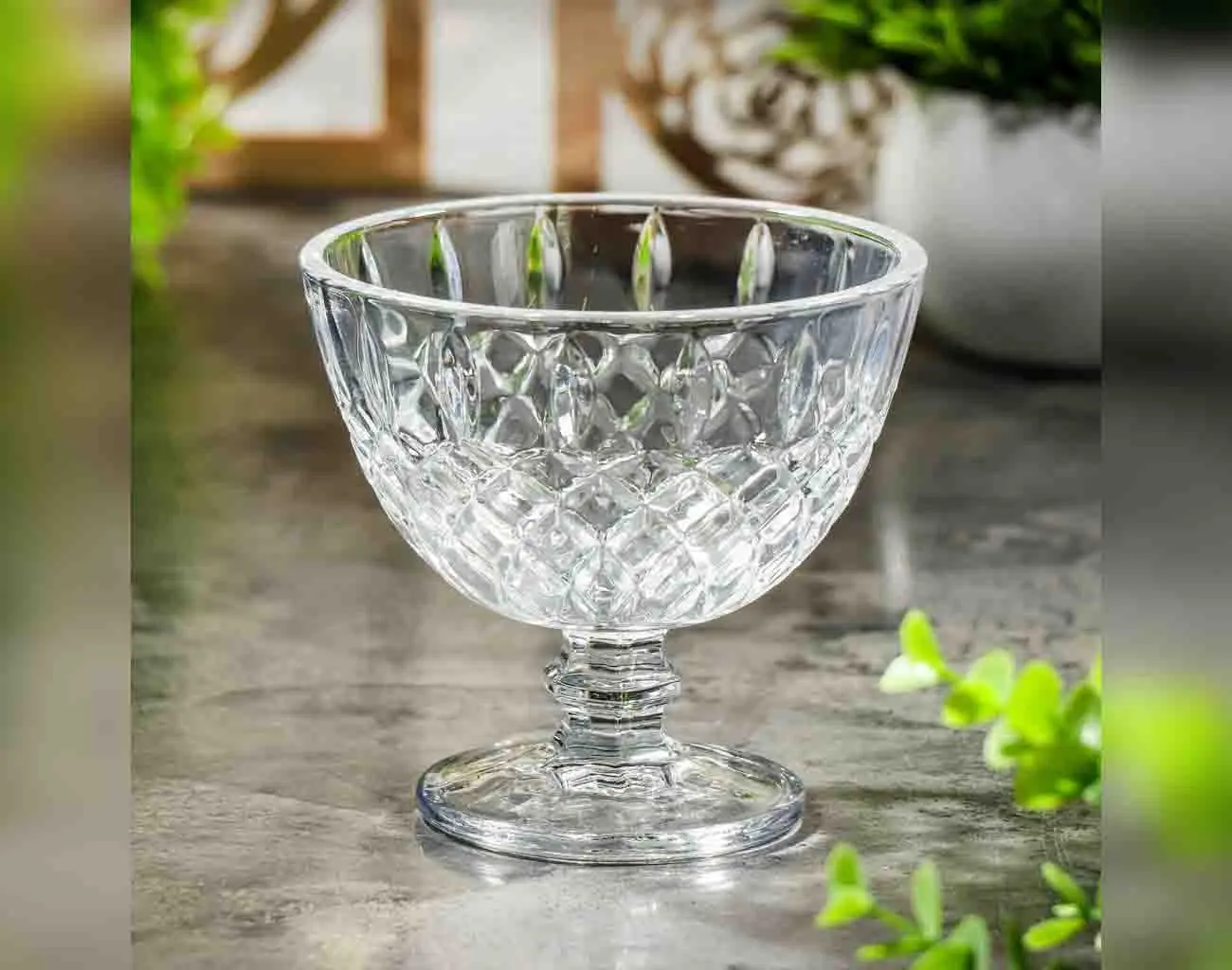 Креманка стеклянная - это изящная и функциональная посуда, идеально подходящая для подачи десертов, кремов и других сладких лакомств. Ее основание выполнено в виде ножки, что придает креманке устойчивость и позволяет легко перемещать ее по столу.