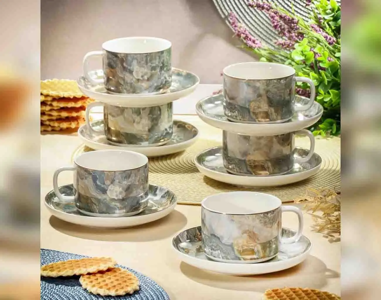 Чайный сервиз станет настоящим украшением для хозяев и их гостей благодаря своему дизайну. Он сочетает в себе легкость и идеальные формы, создавая эффект утонченности. Изготовленный из высококачественной керамики, этот сервиз не только привлекает внимание, но и придает атмосферу нарядности любому чайному застолью. С ним каждый чайный ритуал обретает особую магию, подчеркивая утонченный вкус владельца и создавая комфортную обстановку для приятного общения.