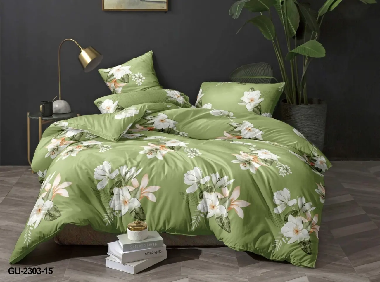 Каждый элемент комплекта изготовлен из высококачественного, дышащего полисатина, который дарит мягкость и приятные ощущения. Цветочный узор, вдохновлённый природной красотой, привносит свежесть и романтику, создавая атмосферу спокойствия в Вашей спальне.