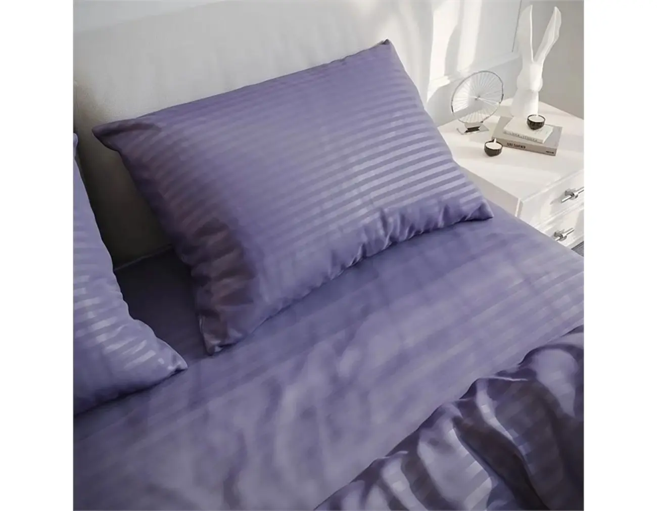 Высококачественный хлопок обеспечивает отличную воздухопроницаемость и гигроскопичность, создавая оптимальные условия для здорового сна. Страйп-сатин с легким блеском и характерной текстурой добавляет изысканности интерьеру, а изумительный фиолетовый  оттенок создает атмосферу тепла и уюта.