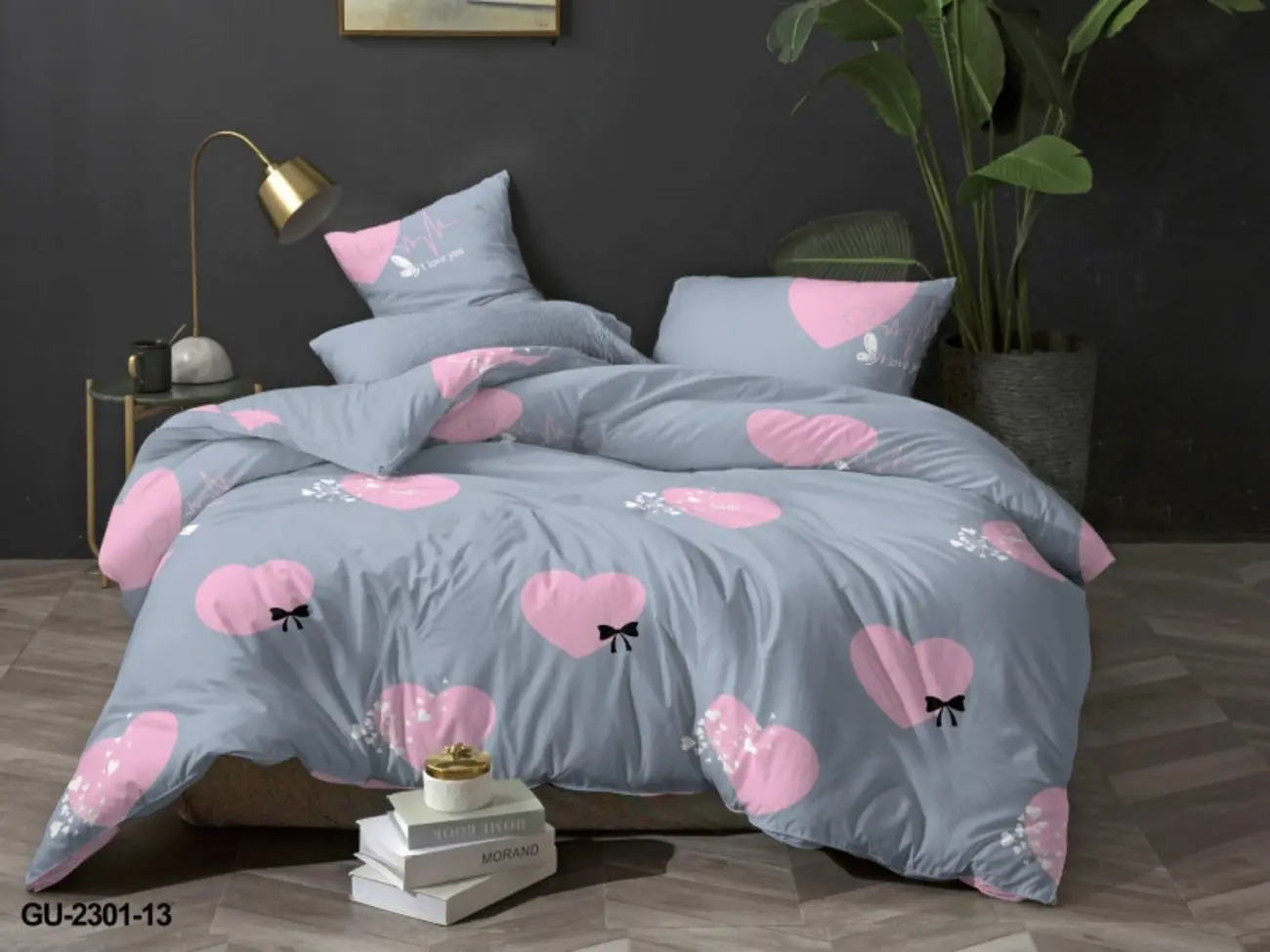 Серый цвет с розовыми акцентами украсит Вашу спальню, добавив ей изысканности и легкости. Этот комплект — замечательный выбор для создания теплой и расслабляющей обстановки в Вашем доме. Подарите себе и вашим близким комфортные и стильные ночи!