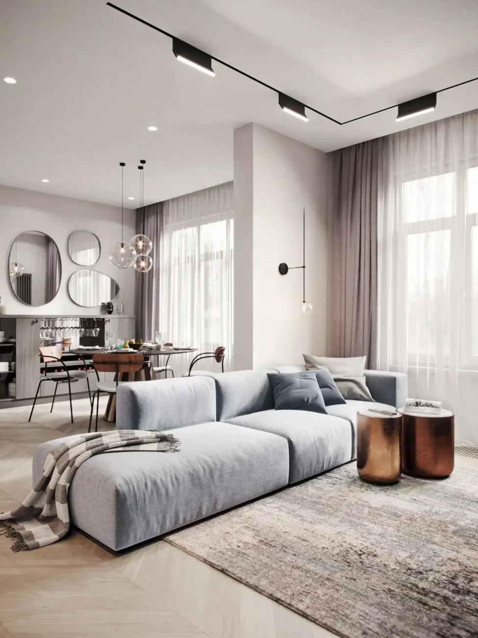 Современный стиль дизайна интерьера характеризуется использованием современных материалов и технологий. Он отличается простотой форм, яркими цветами и функциональностью мебели.
